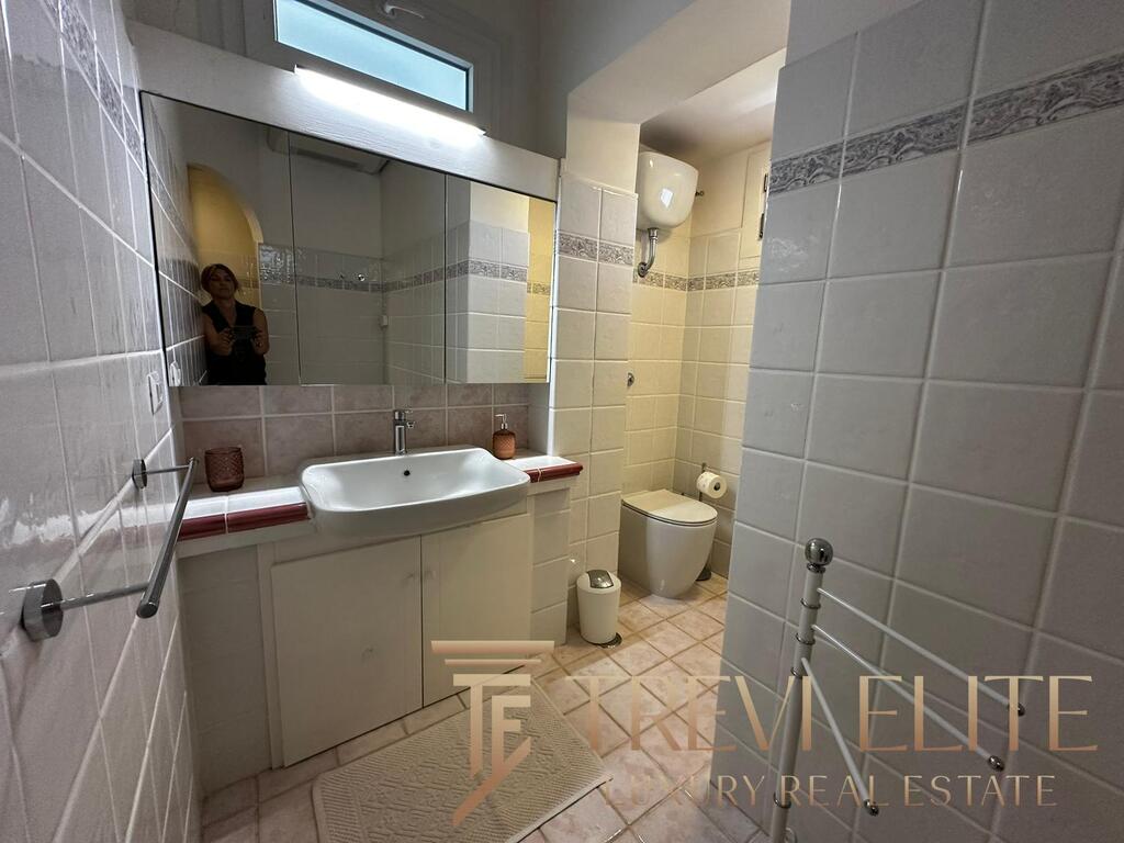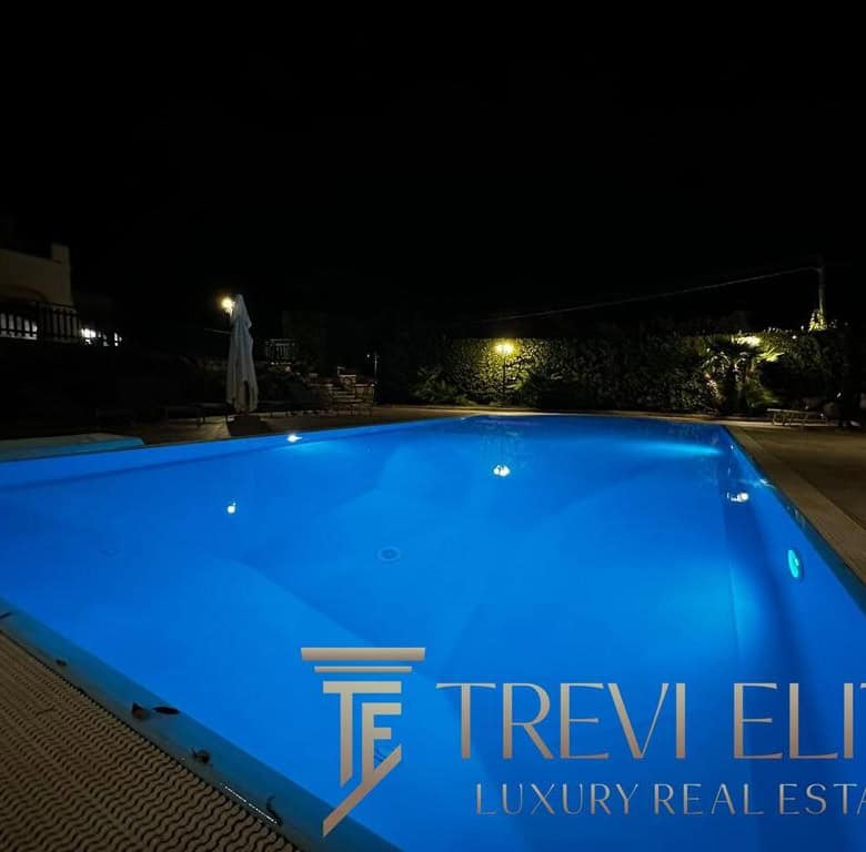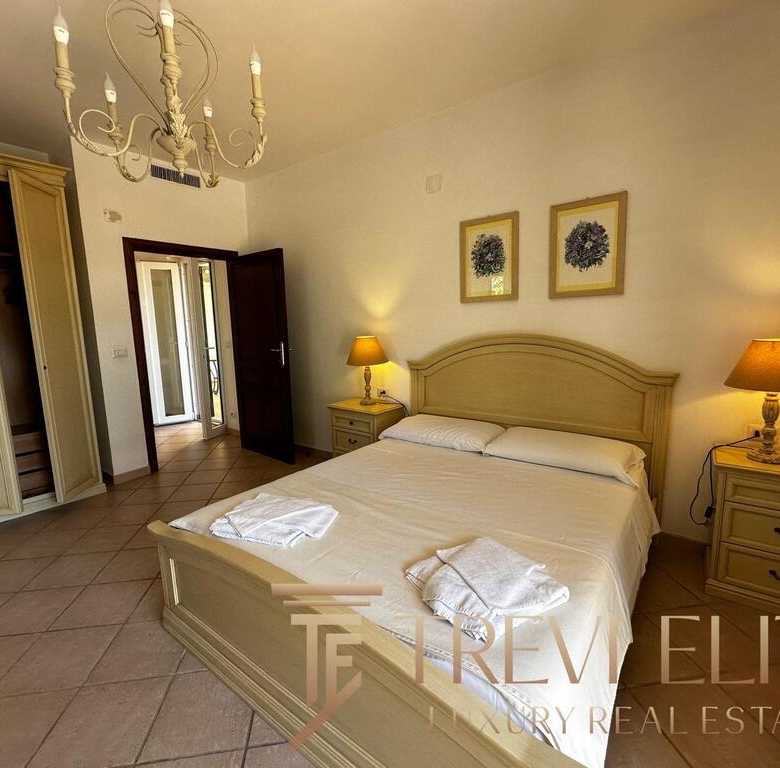 The upper level hosts the main master suite with en-suite bathroom and direct access to a panoramic terrace overlooking the sea. A second double bedroom with private bathroom and an additional single bedroom provide comfortable accommodation for family and guests. The layout is designed for extended seasonal living and ensures privacy, comfort, and functionality.