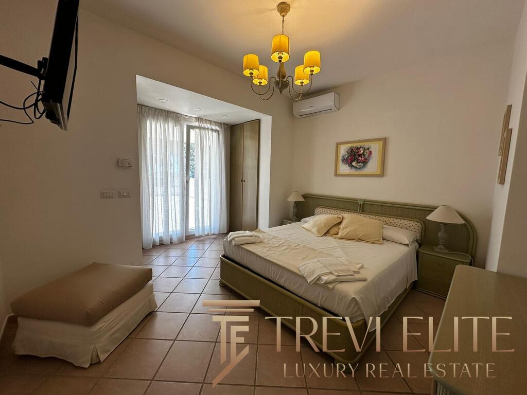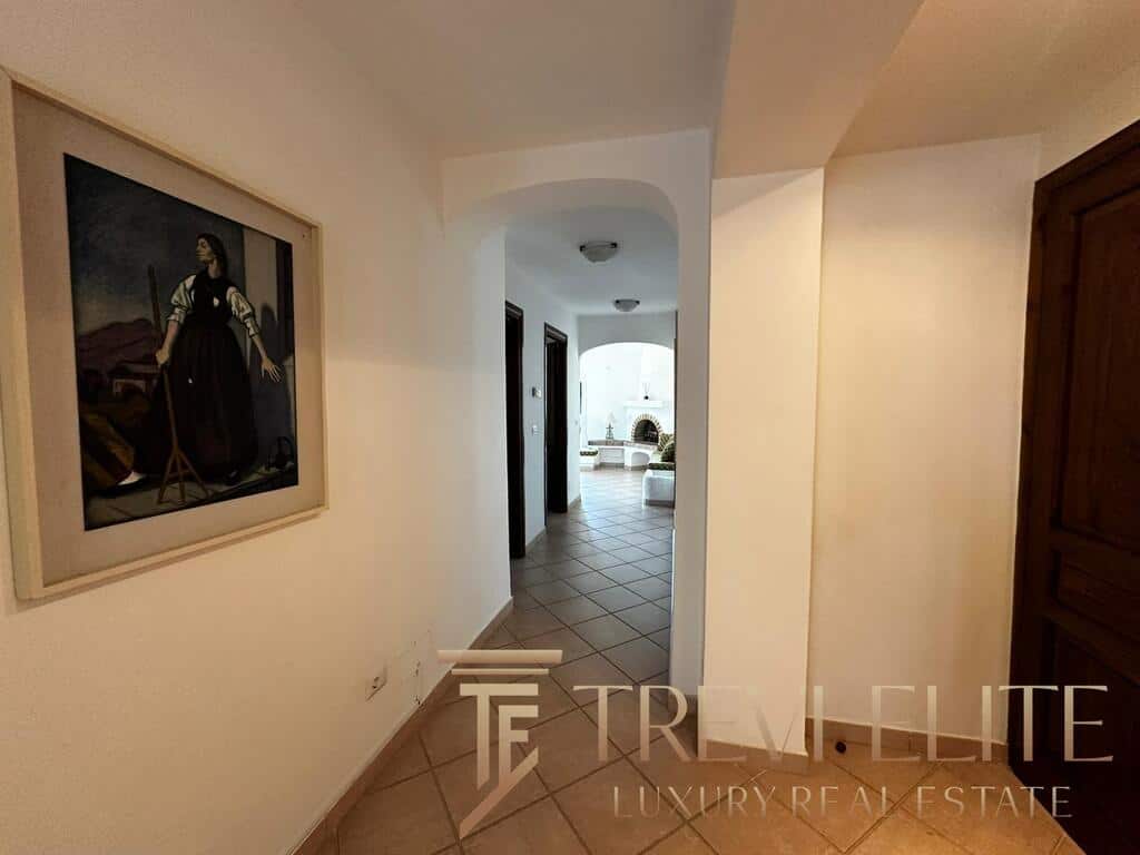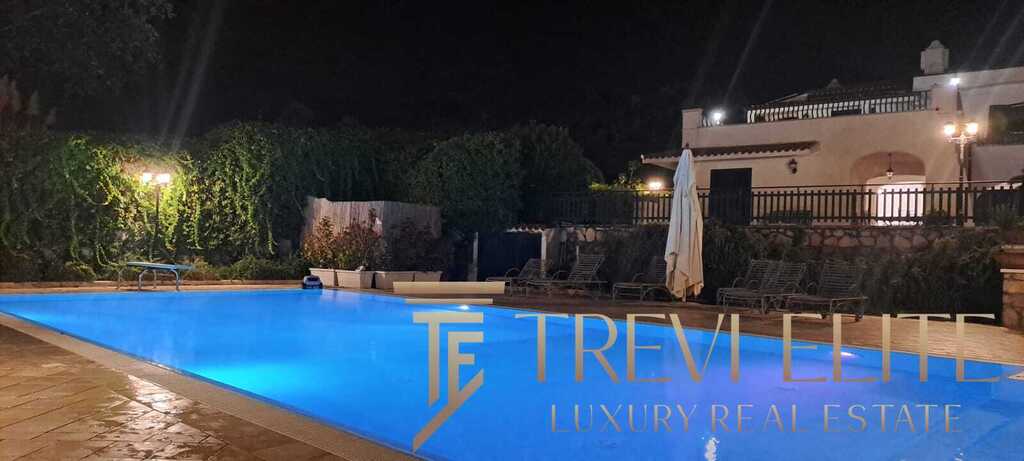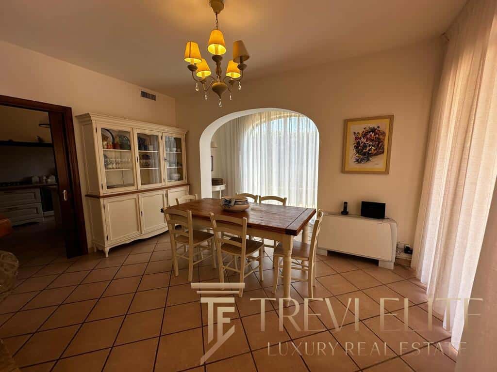 The outdoor areas are among the most valuable features of the property. A landscaped garden surrounds a large private swimming pool and several panoramic sea-view terraces, creating a peaceful resort-like atmosphere. A dedicated barbecue and outdoor dining area are perfect for summer gatherings. The villa also includes an independent guest apartment with double bedroom, small bedroom, and bathroom, providing autonomy and privacy. A private garage and dedicated laundry area enhance comfort during longer stays.