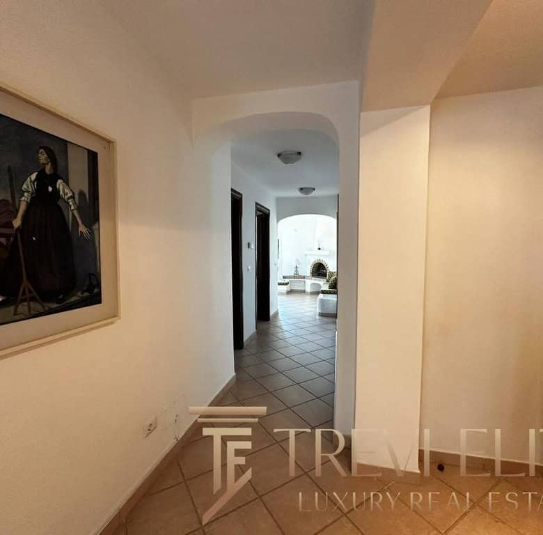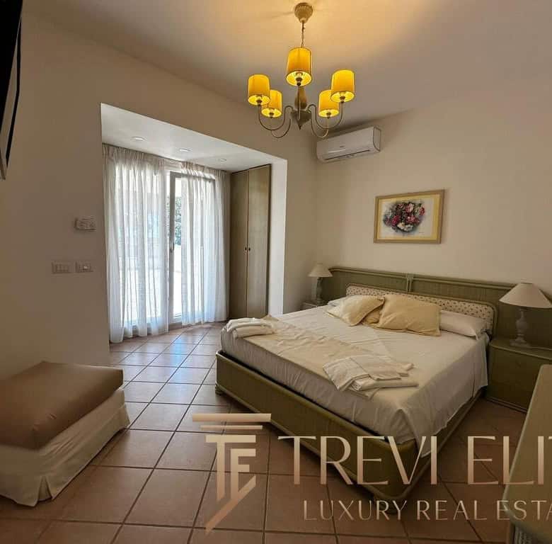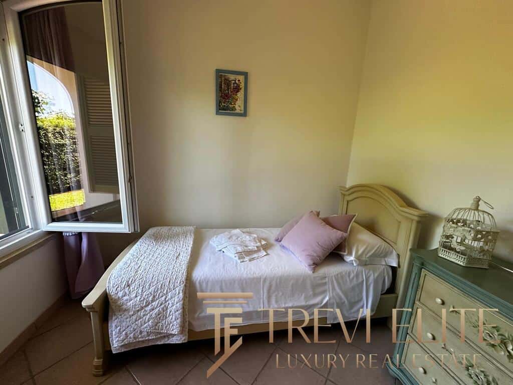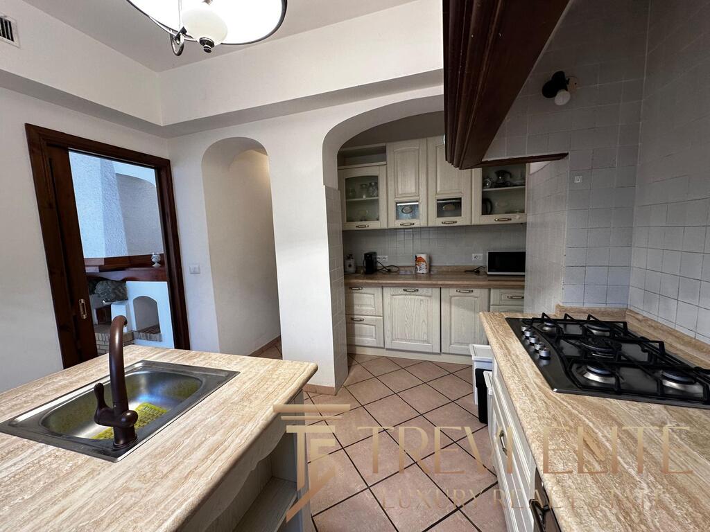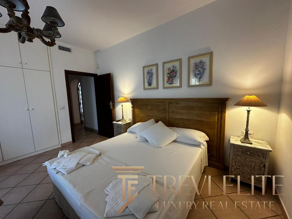 The outdoor areas are among the most valuable features of the property. A landscaped garden surrounds a large private swimming pool and several panoramic sea-view terraces, creating a peaceful resort-like atmosphere. A dedicated barbecue and outdoor dining area are perfect for summer gatherings. The villa also includes an independent guest apartment with double bedroom, small bedroom, and bathroom, providing autonomy and privacy. A private garage and dedicated laundry area enhance comfort during longer stays.