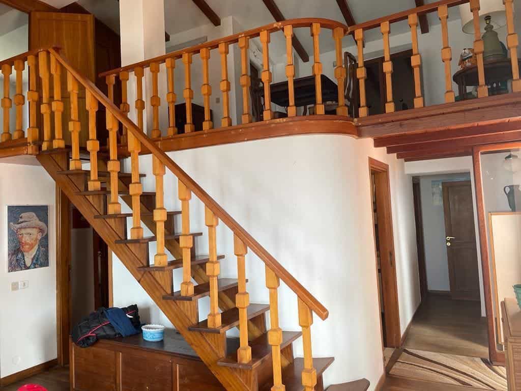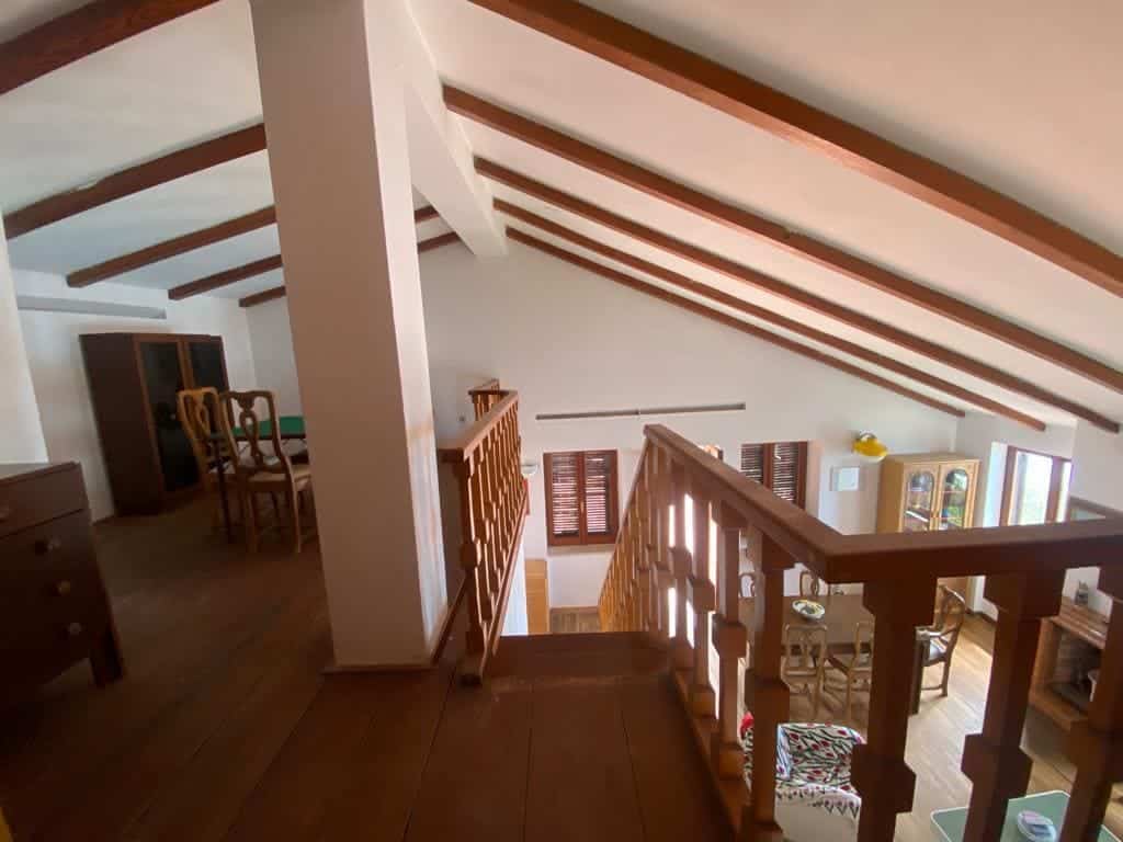This property, which comes with a parking space, can be accessed via both a pedestrian gate and a driveway gate, sharing the driveway with another property. Although the villa is currently in good condition, it would benefit from renovation. The first level features an entrance, a spacious living room, three bedrooms, two main bathrooms, a kitchen, and a utility room. A beautiful wooden staircase leads to the upper floor, which comprises two additional bedrooms, one of which overlooks the living room.