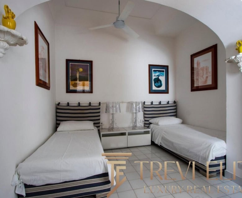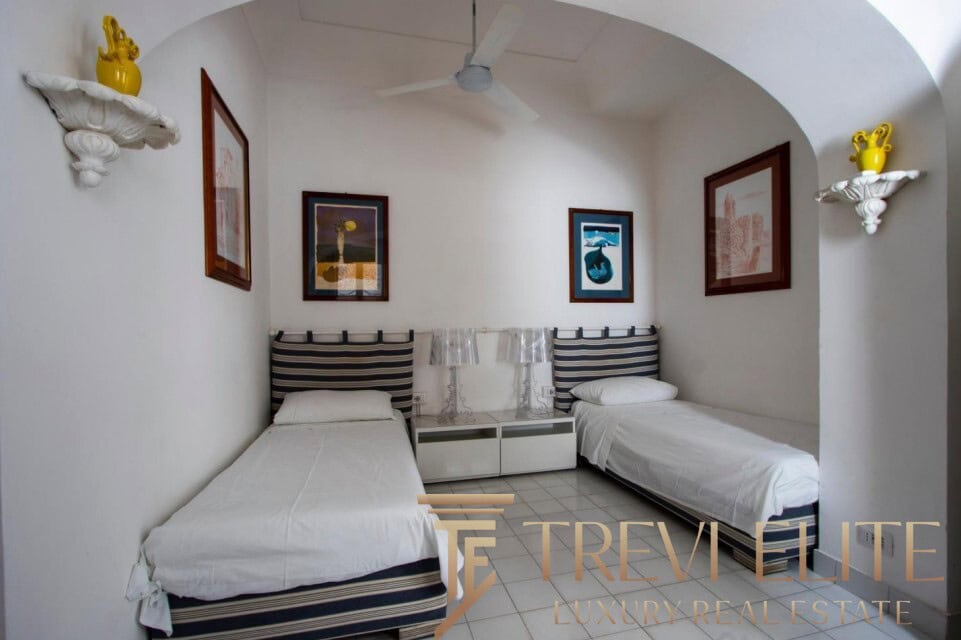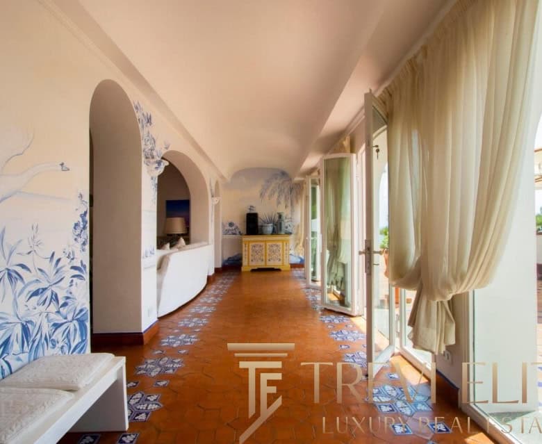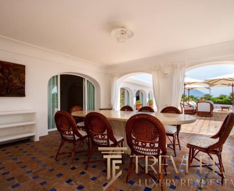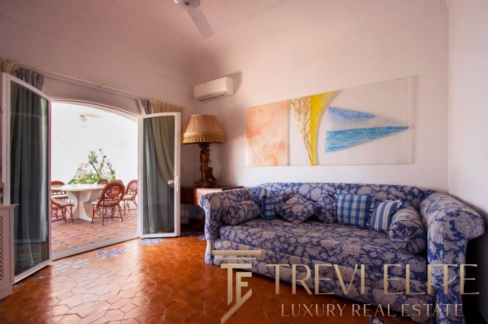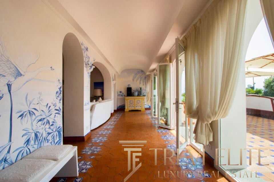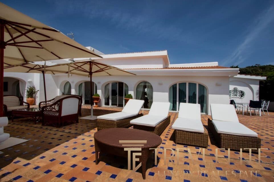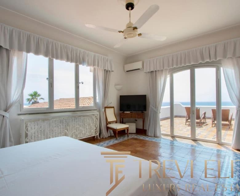A spacious 130-sqm living room with fireplace and panoramic terraces opens onto breathtaking views of the sea and the Pontine Islands. Four suite-style bedrooms, each with a private bathroom finished with handcrafted Vietri majolica tiles, ensure comfort and privacy for every guest. Air conditioning in all bedrooms guarantees comfort during hot summer days.