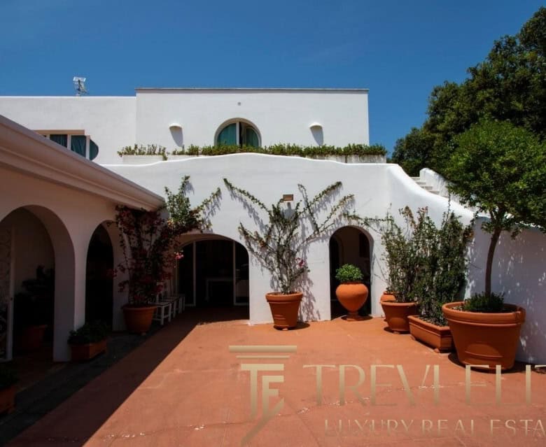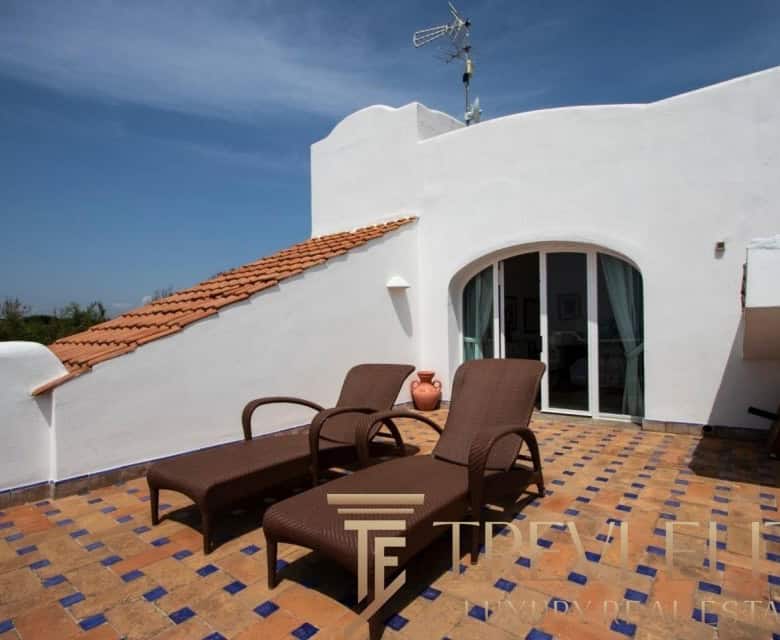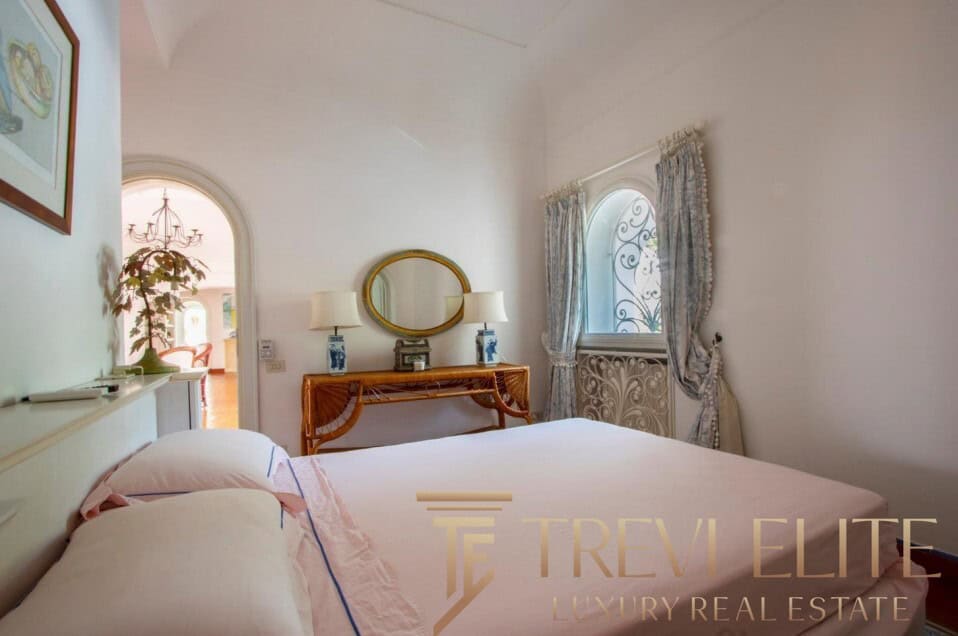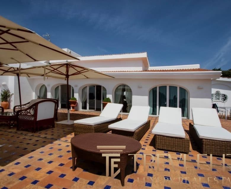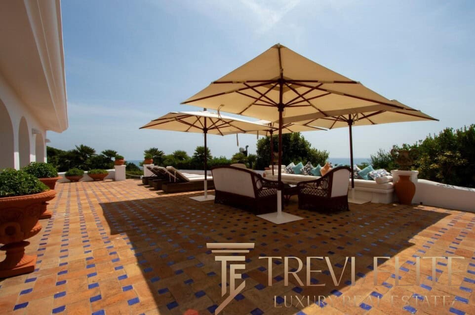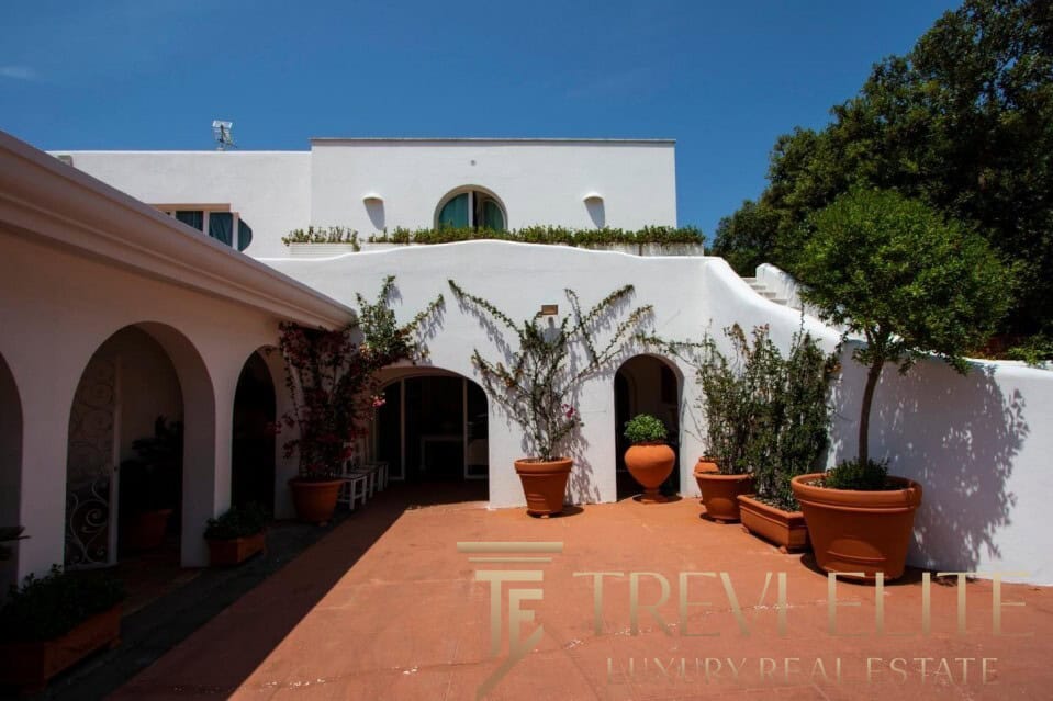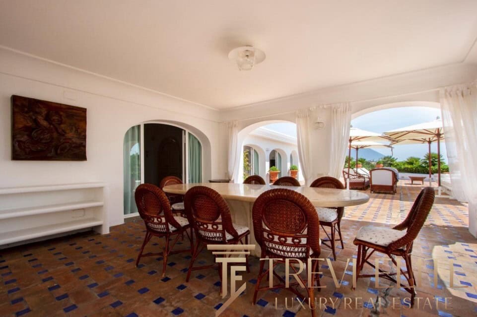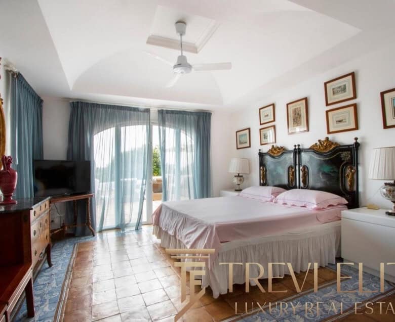A spacious 130-sqm living room with fireplace and panoramic terraces opens onto breathtaking views of the sea and the Pontine Islands. Four suite-style bedrooms, each with a private bathroom finished with handcrafted Vietri majolica tiles, ensure comfort and privacy for every guest. Air conditioning in all bedrooms guarantees comfort during hot summer days.