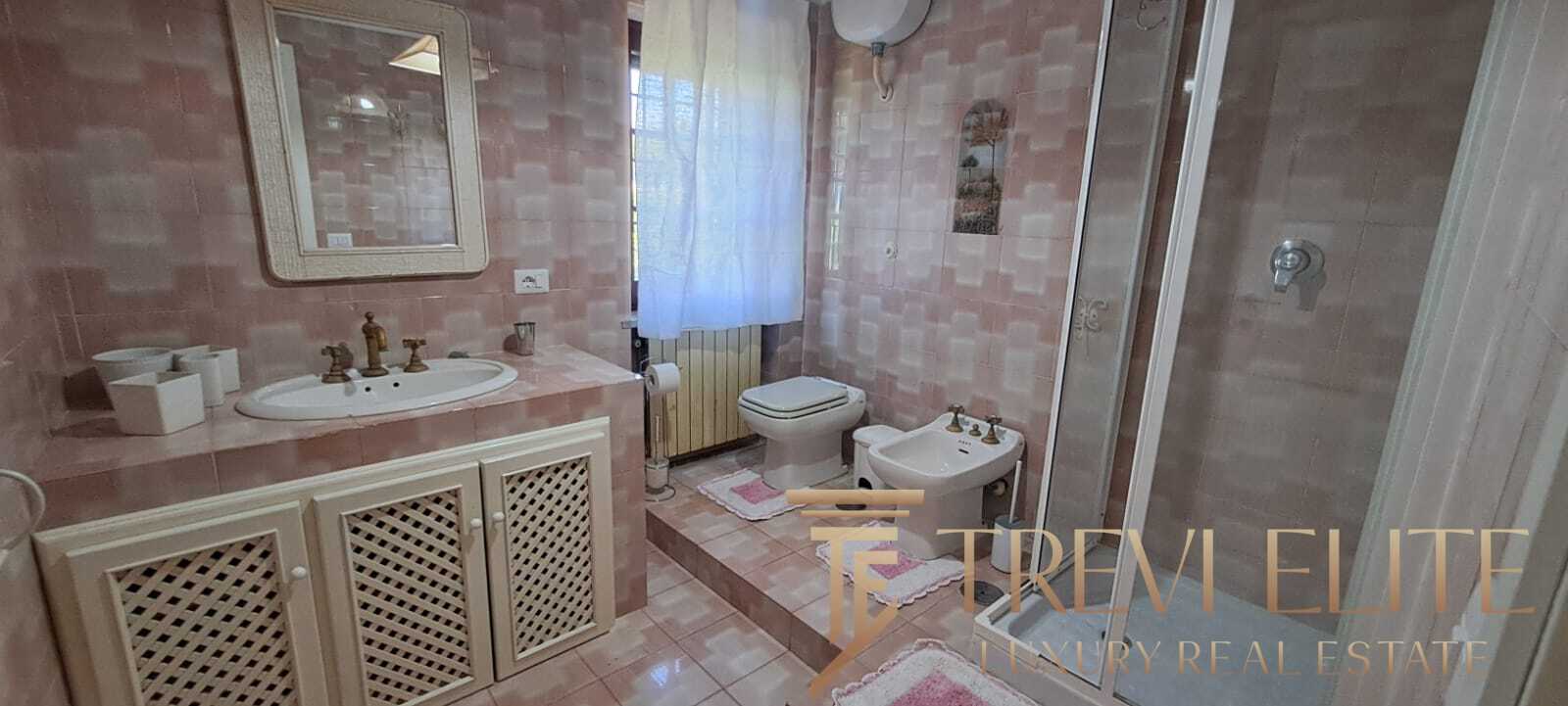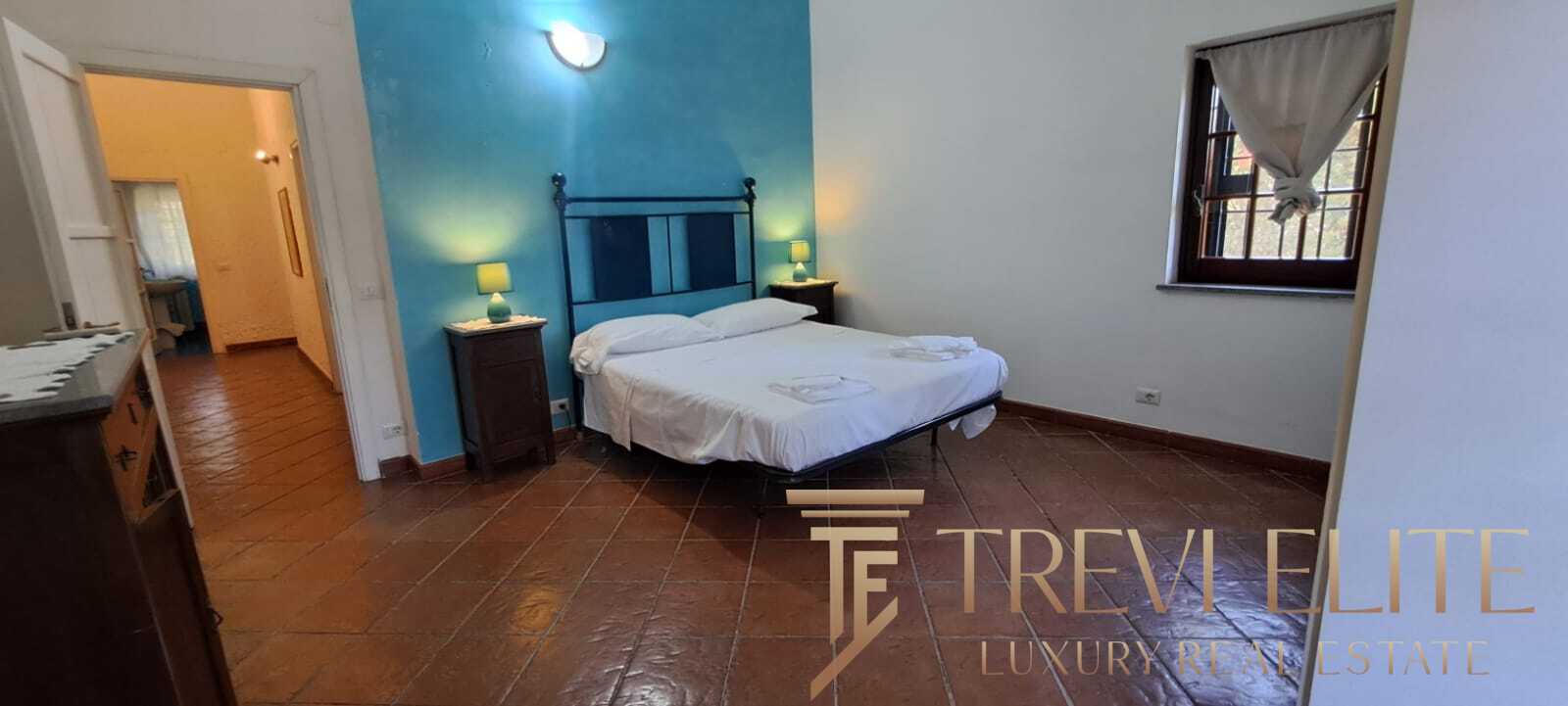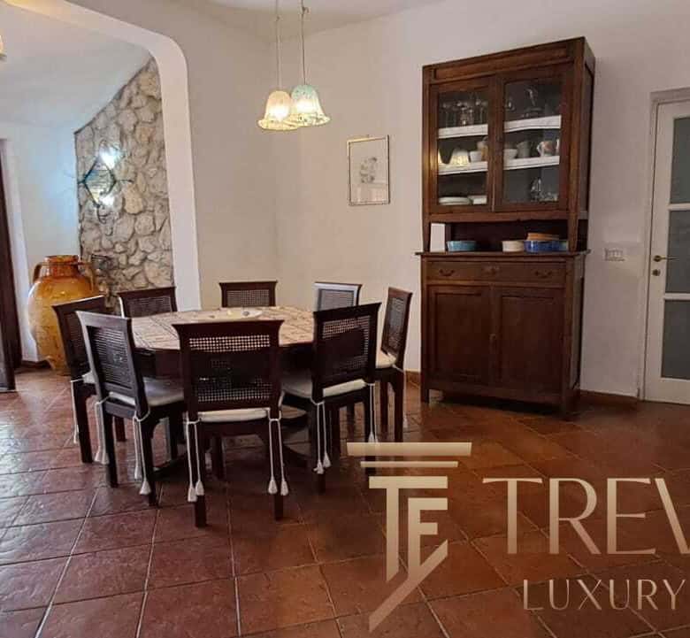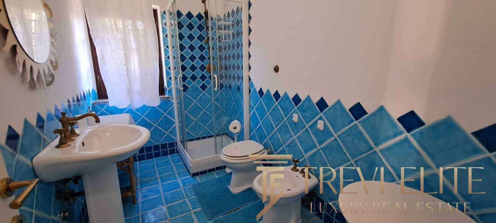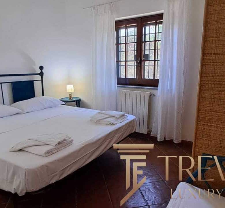 The night area is designed for both comfort and privacy, offering two spacious master bedrooms, one twin bedroom, one bedroom with French bed, and an additional single room. Three full bathrooms serve the sleeping quarters, ensuring convenience for families and guests. The layout supports extended seasonal stays and refined summer living.