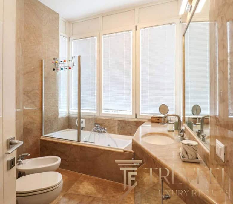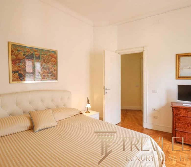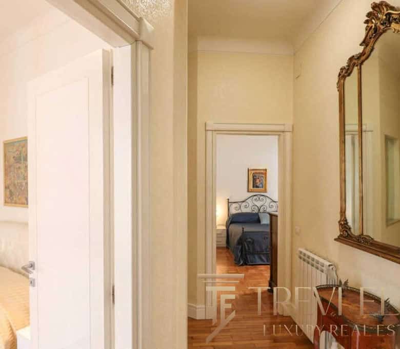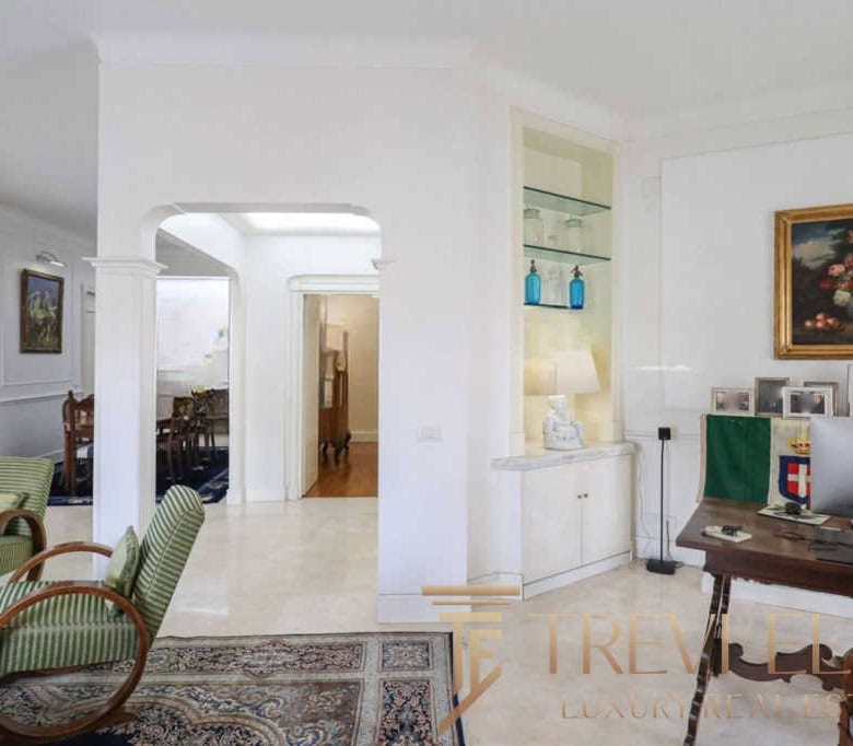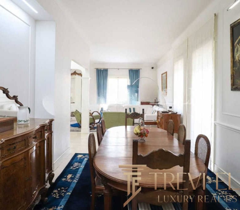 L’attico è completamente arredato con mobili d’epoca e rifiniture di alto livello.