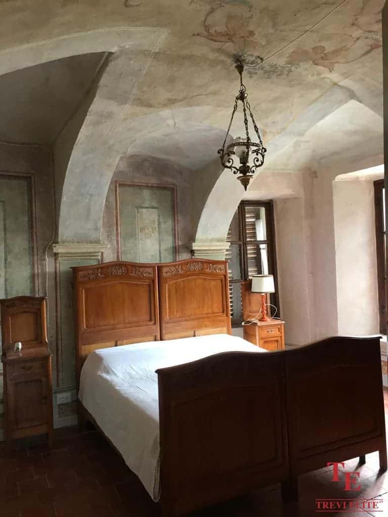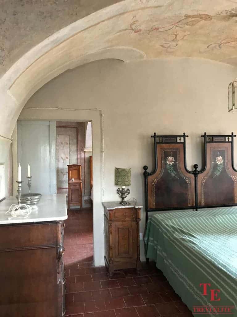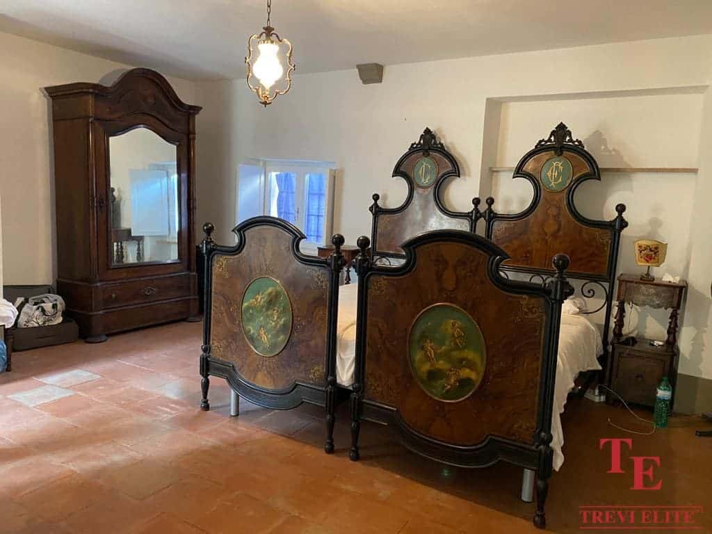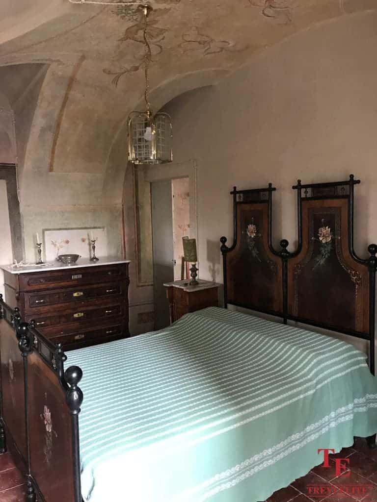 La zona notte si trova invece al primo piano ed è composta da sei camere da letto, di cui due affrescate, per un totale di dodici posti letto, i bagni sono tre , di cui uno con doccia, un bagno per gli ospiti, una sala da bagno con vasca idromassaggio per due persone. Nella camera padronale, di circa 50 mq e dotata di bagno en suite con doccia, è altresì presente una stanzetta dove arrivano gli attacchi del riscaldamento per essere adibita a sauna.