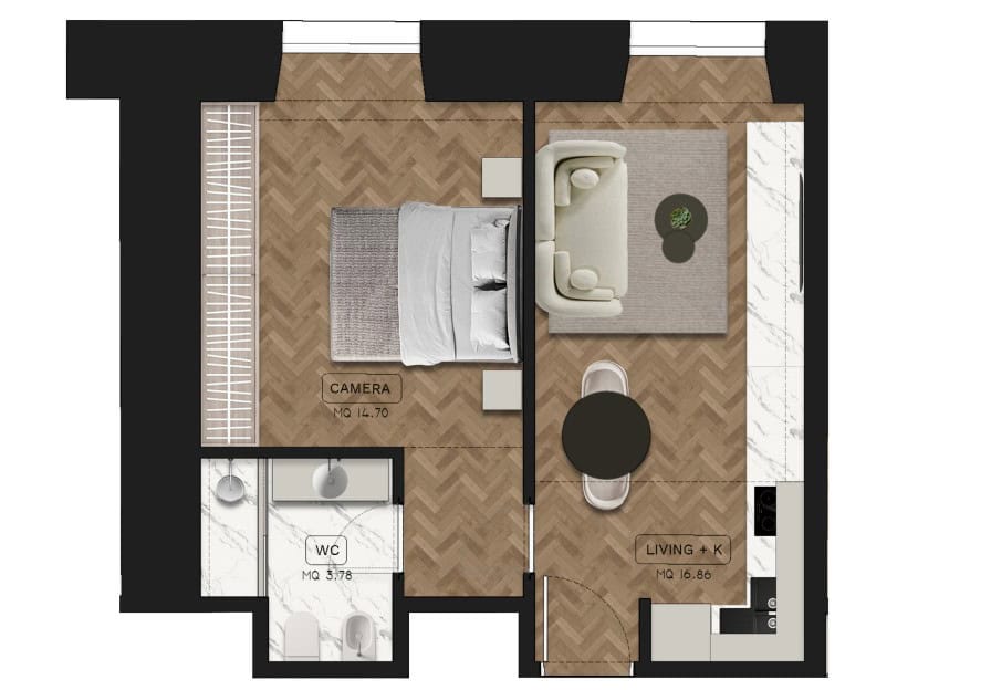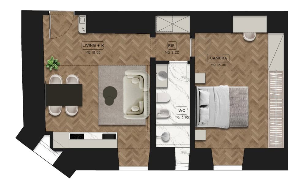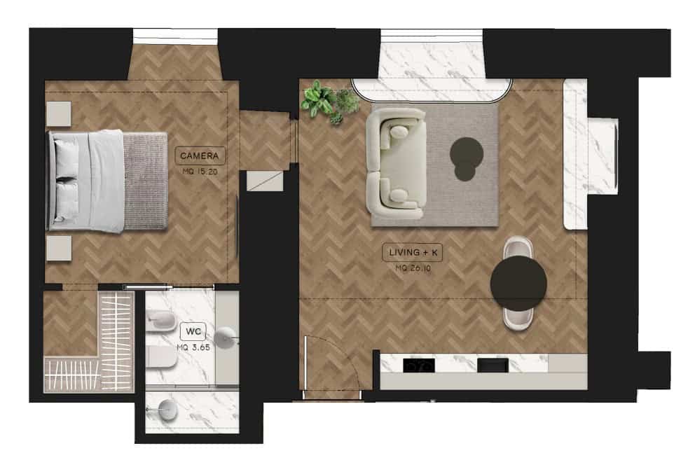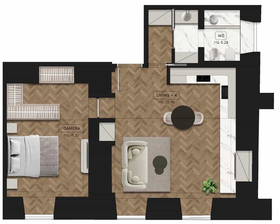 - Appartamento 1 Prezzo: €539.000 Bilocale elegante con ottima distribuzione degli spazi