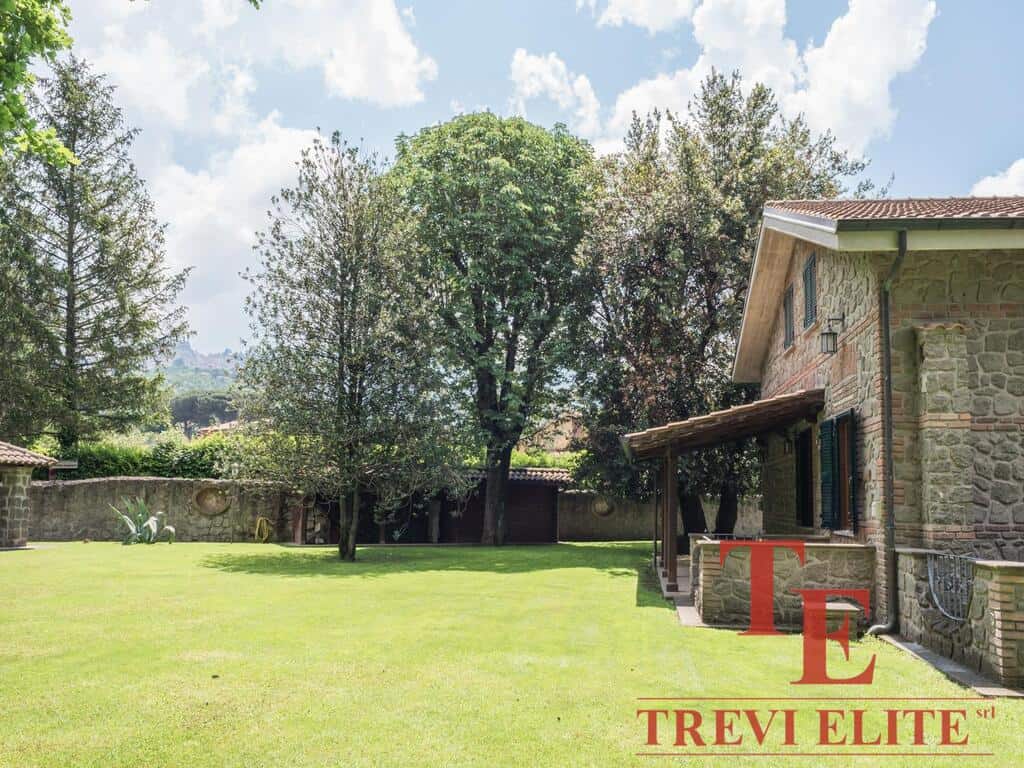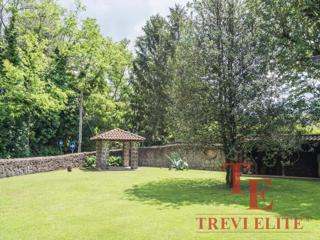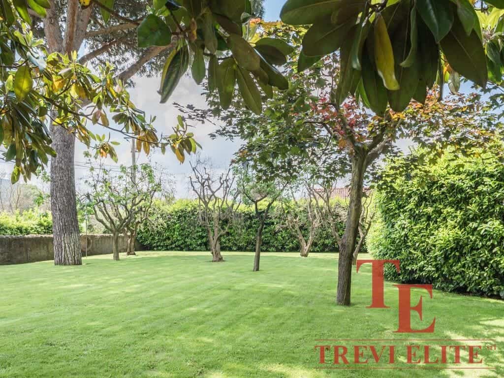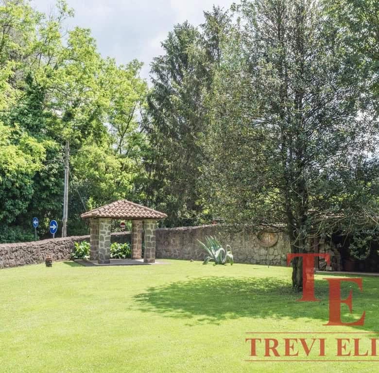 Piano interrato: ampia taverna di rappresentanza con angolo bar, camera da letto, con grande bagno, palestra professionale, una lavanderia , zona servizi e locali tecnici , il tutto con ingresso indipendente. La proprietà dispone di un ampio garage rifinito in pietra con posti per due auto. La villa è circondata da un ampio parco di 2 600 mq con alberi secolari di alto fusto .