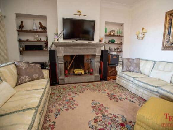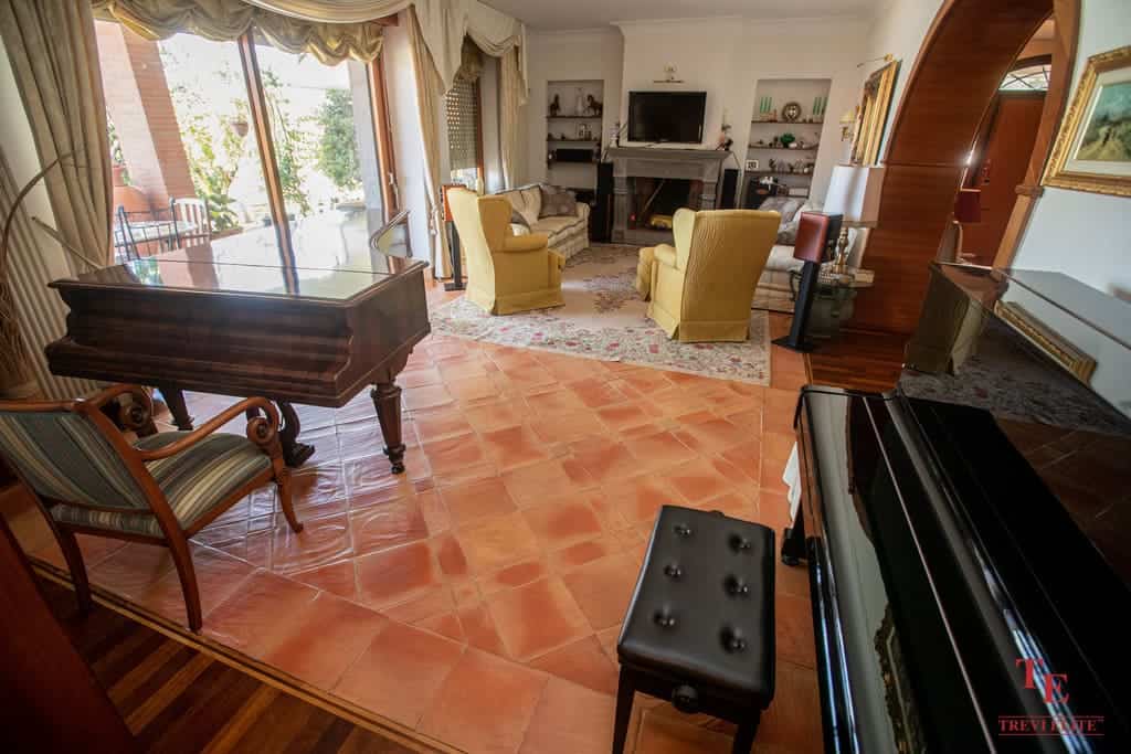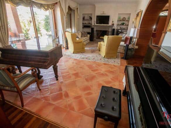 Piano terra: – ingresso, soggiorno con camino, cucina, sala da pranzo, camera da letto con proprio bagno, studio, bagni ospiti, ampio patio esterno; una