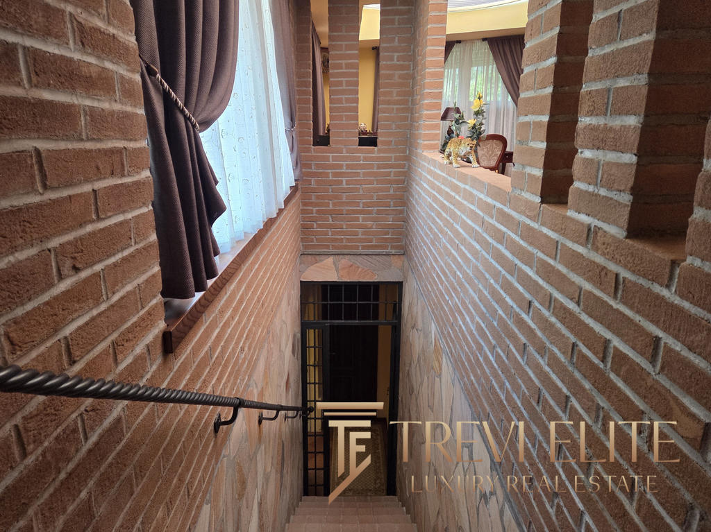 La villa principale si sviluppa su tre livelli, con una distribuzione degli spazi pensata per la massima funzionalità e armonia. Al piano terra: salone di rappresentanza, cucina abitabile, studio e accesso diretto alla piscina con area relax. Al primo piano: camere con bagno privato e terrazze panoramiche. Al piano seminterrato: ampi ambienti indipendenti, ideali per ospiti o familiari, completano una proprietà di alto livello e grande comfort abitativo.